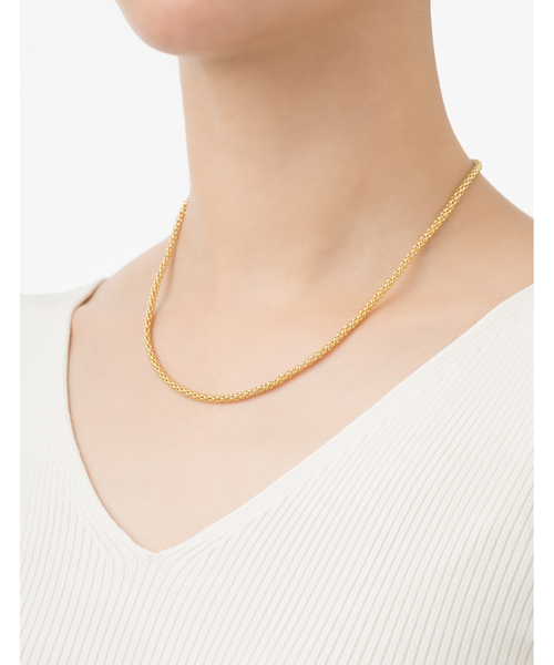 デザインチェーンの可能性に着目した「Silent Rain」シリーズから、 程よいボリューム感が魅力のMサイズネックレスが登場。 細やかに編み込まれたポップコーンチェーンが、 動きに合わせて複雑な光を反射し、胸元を上品に彩ります。 華やかさと繊細さを併せ持つゴールドカラーは、 シンプルな装いに映えるアクセントとして最適。 性別を問わないユニセックスデザインで、 レディース・メンズ問わず幅広いスタイルにマッチします。 1本使いはもちろん、細めのネックレスやペンダントとの重ね付けにもおすすめ。 同デザインのSサイズ(31510263004) ※強い力が加わりますと曲がりや歪みが生じる可能性がございますので、お取り扱いには十分ご注意くださいませ。 【メーカー品番】 1602251072 【MARIHA/マリハ】 MARIHA が目指しているのは、それぞれの個性を持つ女性が毎日でも身につけることができるジュエリー。 日本古来の「花鳥風月」の美意識を大切にしたミニマルかつ繊細なデザインを熟練の職人たちとともに丁寧に作り上げています。 すべての作品は「ジュエリーのひとつひとつには、自然の恵みから生まれた鉱石が持つ力が宿っている。」 というロマンティックな信条に基づいて作られているもの。 お守りのように持つ人を守り、美しい人をさらに美しく輝かせる―― ストーリー性のある洗練されたジュエリーをお届けします。 【注意事項】 ※商品画像は、光の当たり具合やパソコンなどの閲覧環境により、実際の色味と異なって見える場合がございます。あらかじめご了承ください。 ※画像の商品はサンプルです。実際の商品と仕様、加工が若干異なる場合があります。 ※サイズ表記はあくまで目安となります。 ※その他の予約商品、通常商品との同時決済はできません。 ※入荷状況により、お届け予定が前後する場合があります。 ※お客様への発送が店頭販売より遅れる場合もあります。 ※追加生産商品は、一部の店舗、通販で販売中の場合がございます。予めご了承下さい。 ※商品を使用前に、タグ等に記載されている「取り扱い上の注意書き」「洗濯表示」を必ずご確認ください。 ※商品に不良が無い場合、包装紙および箱の彼損がございましても発送いたします。あらかじめご了承ください。