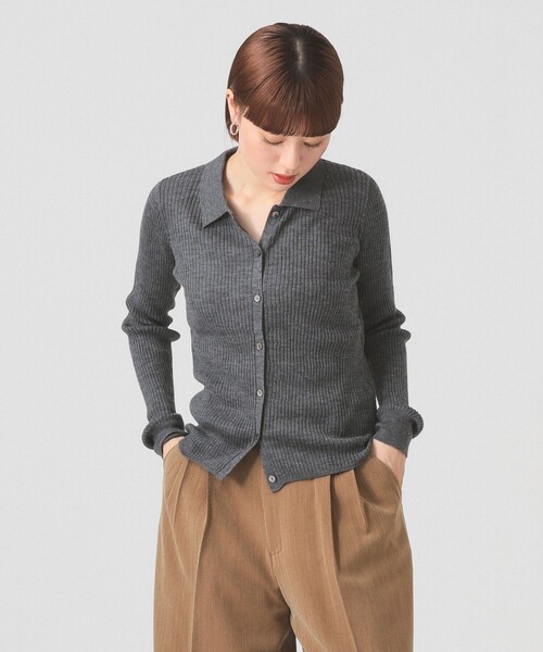 トレンドの着こなしが叶う、着回し力抜群トップス■デザイントレンドのポロ襟デザインを取り入れた、大人の女性にぴったりなリブカーディガン。 伸縮性のあるリブ編みが身体に心地よくフィットし、女性らしいコンパクトなシルエットを演出します。 トップスとしても、羽織りとしても使える、着回し力抜群の万能アイテムです。■コーディネートスラックスやデニムなどのカジュアルなワイドパンツと合わせれば、こなれ感のある大人カジュアルスタイルが完成します。 1枚で主役として着るのはもちろん、ジャケットやジレのインナーとして、コーディネートのアクセントにするのもおすすめ◎。■サイズ体のラインを拾いすぎない、程よいゆとりを持たせたサイジング。■素材しっとりとなめらかな肌触りの素材。程よい肉感で通年着用可能。■ケア方法ドライクリーニングのみ可(詳細は商品についている品質表示ラベルをご覧ください)BEAMS STAFF:H164 Size:(画像の商品はサンプル用サイズのため実際のサイズ感と異なります)生地の厚さ:やや薄手透け感:なし伸縮性:あり光沢感:なし裏地:なし【スタッフレビュー】スタッフ:田中 里実身長:158cm / 普段サイズ:M / 着用サイズ:ONE SIZEサイズ感: タイト過ぎず、程良く身体のラインが出る女性らしいシルエット。素材感: 薄手で重ね着しやすい生地感。ポイント: シルエットがとにかく良く、合わせるものを選ばず色々なコーディネートが楽しめそう。※光の当たり具合やパソコンなどの閲覧環境によって、実際の色味と異なって見える場合がございます。予めご了承ください。※商品の色味は商品単体で撮影した画像をご参照ください。
