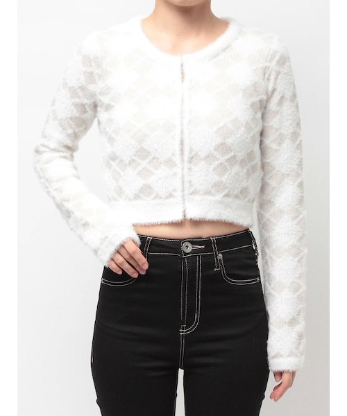 GYDA(ジェイダ)の「Argyll patternミニシャギーニットカーディガン(カーディガン/ボレロ・レディース・オフホワイト/ブラック・F)」の2枚目の写真