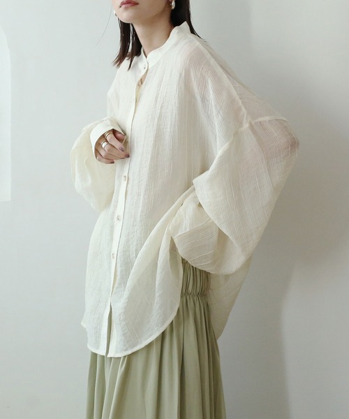 たっぷりボリュームで抜け感抜群なシアーシャツ。 表情のあるシアー素材が大人見え効果◎ カフスのさりげないデザインが◎ こなれ感のあるスタイルが作りやすいのも嬉しいポイント♪ 【サイズ】 S / Mサイズ 総丈:64 / 74cm 肩幅:69 / 71cm 袖丈:48 / 58cm アームホール:29 / 30cm 袖口:10cm 身幅:68 / 72cm 裾幅:67 / 74cm 【モデル身長:着用サイズ・カラー】 158cm:アイボリーSF、ベージュSF、ピンクSF、マスタードS 164cm:マスタードF、オリーブF、ブラウンF 【素材】 ポリエステル100% 【カラー】 アイボリー / ベージュ / ピンク / マスタード / グレージュ / オリーブ / ブラウン 【備考】 ・伸縮性なし / 透け感あり / 裏地なし / ポケットなし ※生産のタイミングによって生地に若干の色ブレが生じる場合がございます。 ※ご利用の端末環境により、商品画像と実物では多少色合いが異なって見える場合がございます。 ※お洗濯、アイロンの際は内タグの品質表示を必ずご確認ください。 ※商品にはたたみシワ等のシワがついている場合がございます。 ※染料による匂いが抜けきれず、特有の匂いがする場合がございます。 ※他の衣類へ色移り・色落ち(特に湿った状態)する場合がございます。 ※素材の特性上、雨や水に濡れるとシミになる事があります。 ※水シミが生じた場合はスチームアイロンの蒸気を軽く当て、自然乾燥して下さい。 ※アクセサリー等による引っ掛けにご注意ください。 -NOAHL(ノアル) - 「今ワタシたちが本当に着たい服」 ニュアンスカラーをベースに、自然体で女性らしい雰囲気を。 決まりすぎないこなれ感のあるスタイルにこだわり シンプルなのにどこかおしゃれを感じる “センスよく魅せる1着”を提案します。 どんな瞬間もナチュラルに彩り 柔らかに纏う日常に。 -商品のお気に入り登録- 完売カラーの再入荷通知や、ラスト1点、セールの通知をお知らせいたします。 -ブランドお気に入り登録- 新商品や再入荷など、いち早くブランドの情報を受け取ることができます。