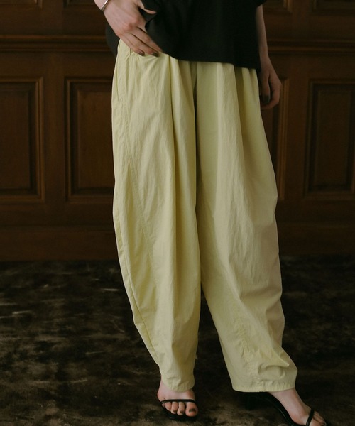 ドロストがアクセントのボリュームデザインパンツ ーーー ★おすすめポイント★ [1]トレンドのスポーティなナイロン素材 [2]カーブシルエット+ボリュームデザイン [3]大人カジュアルなワークテイスト ーーー [fabric] トレンドのシャカっとした風合いのスポーティなナイロン素材。 イエローやオリーブカラーの展開で、ベタなベーシックになり過ぎないアクセントにもなるカラー展開にしています。 [design] ウエストにドロストを入れてアクセントにした、ワークテイストディテール。 裾に向かってカーブシルエットを演出。 ウエストにタックを取り、たっぷりと分量を出したボリュームデザインパンツです。 [styling] Tシャツやニットなどを合わせた、大人カジュアルスタイリングがおすすめです。 【EF(エフ)】 Understatement & Humor 華美ではない都会的な控えめさが創り出す 芯のあるオトナの色っぽさと ファッションを楽しむユーモアを掛け合わせた オトナのためのワードローブを提案します。 ※屋外での撮影画像は光の加減で実際の商品より明るく見えたり、風合いが異なって見える場合がございます。 商品の色味はスタジオ撮影の画像を参考にして下さい。 ------------------------------------- ≪お買い物をよりお楽しみいただくために≫ ◆商品のお気に入り登録(ハートマークをクリック) 完売カラーの再入荷通知や、完売間近の通知、セールの通知も受けることができます。 ◆ブランドのお気に入り登録 新商品や再入荷など、いち早くブランドのお得な情報を受け取ることができます。 -------------------------------------