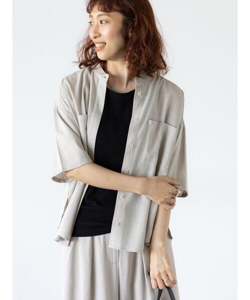 両胸にポケットをあしらったバンドカラーシャツ。レーヨン麻混素材のナチュラルな風合いと柔らかな着心地の良さが魅力。ゆったりとしたリラックスシルエットで、1枚でもさらりと快適に着用することができます。同素材のアイテム(2400898-24-18レーヨン麻ワイドパンツ)とのセットアップも可能◎前を開ければ羽織としても活躍してくれる、着回し力の高いアイテムです。※商品画像は、撮影環境やお客様のご利用のPC・スマートフォンのモニター環境などにより実物と色味に差異がある場合がございます。【その他採寸】F 着丈:[前]60.5cm[後]65cm