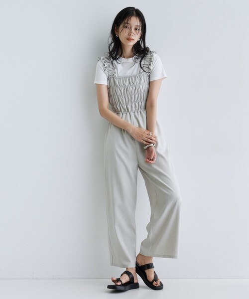Design Point トップス部分に入れたシャーリングが目を惹くサロペットは、軽やかな印象を与えつつ、程よいフィット感で女性らしいシルエットを演出します。 スタイリングの幅を広げる一着です。 Styling Point Tシャツやタンクトップを重ねたレイヤードでデイリースタイルに。 さらりと一枚でアクセサリーをプラスすれば、華やかさが引き立ちモードさが際立ちます。 Fabric Point 柔らかく、着心地の良い素材を使用。 通気性がありオールシーズン着用可能。 モデル身長:175cm 着用サイズ:38(M) ※照明の関係により、実際よりも色味が違って見える場合があります。また、パソコン・スマートフォンなどの環境により、若干製品と画像のカラーが異なる場合もございます。 店舗へのお問い合わせ商品番号:523-52030 ●製品寸法: 38(M):B76~110cm W64~96cm H116cm 股下64cm 前股上34cm 渡り幅36cm 裾幅30cm 備考: