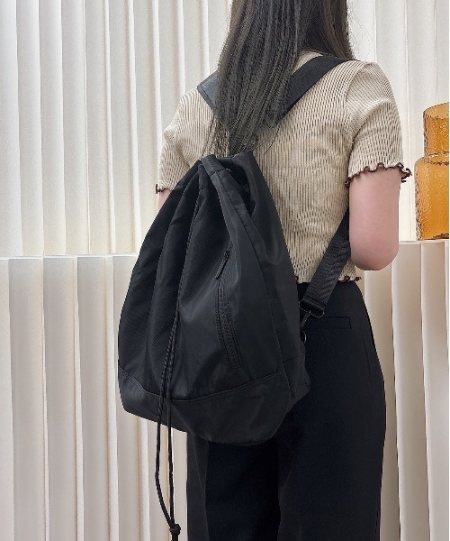 巾着 ナイロン リュック ハリとツヤのあるナイロン素材と巾着仕様がポイントの、ラフに持てるデイリーリュック。 開け口は絞るだけで簡単に開閉でき、バッグのサイドにもジップがあるので、荷物の出し入れもスムーズ。メイン収納に加え、内側にも切り替えがあり、実用性もしっかり。 軽量で持ち運びやすく、デイリーユースはもちろん、旅行やレジャーにもぴったり。抜け感のあるデザインが、コーディネートにこなれた印象をプラスしてくれます。 【 Attention 】 ※商品画像は撮影時の光や角度、お使いのモニター環境により実物の色味と異なって見える場合がございます。 ※サイト上のカラー・サイズ表記と商品タグのカラー名・サイズ名が異なる場合がございます。 ※生産時期により、色・素材・サイズ感など多少異なる場合がございます。 ※商品によっては、繊維や染料のにおいが感じられる場合がございます。 数日のご使用や陰干しなどで匂いはほとんど感じられなくなりますのでお試しください。 ※通販の特性上、到着時には畳みシワがついている場合がございます。 【Information 】 お気に入り登録がオススメ! ▼商品のお気に入り登録 完売カラーの再入荷通知や、ラスト1点、セールの通知をお知らせ致します。 ▼ブランドお気に入り登録 新商品や再入荷など、いち早くブランドの情報を受け取ることができます。