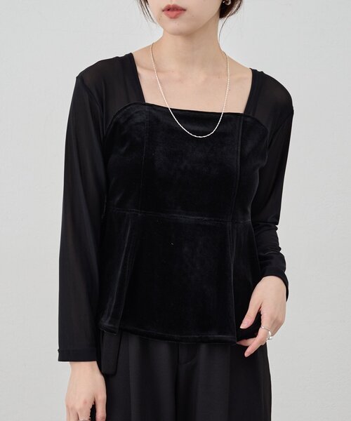 トレンドの温かみのあるベロア素材のトップス 絶妙な光沢感がスタイリングをおしゃれに仕上げてくれる一枚。 まだ暑い残暑から着やすいように、 アーム部分は透け感のある素材にしました。 異素材ミックスなので重く見えすぎず トレンド感も感じながら着て頂けます。 腰回りもカバーできるペプラムデザインにしています。 タイトスカートも良し、カジュアルなデニム合わせも良し。 同素材のタイトスカート(SNZ1052201A0003)と合わせたらセットアップにもなるので、 オケージョンシーンにもお使いいただけます。 - - - - - - - - - - - - - - - 透け感:なし 裏地:なし 伸縮性:あり 光沢感:ややあり 生地の厚さ:普通 - - - - - - - - - - - - - - - 【注意事項】 ※撮影環境により、光の当たり具合で色味が違って見える場合があります。あらかじめご了承下さい。 ※画像はサンプルの為、実際にお届けする商品と仕様が異なる場合がございます。 ※雨の日の着用や、長時間羽毛を押さえるような着用はお避け下さい。 万が一、雨などに濡れた場合は乾いた布で軽くたたくようにふき取ってください。 ※色物は、発汗、摩擦などにより多少脱色したり、色移りすることがあります。 ※着用後は、毛並みにそって軽くブラッシングし、保管はハンガーに掛けて、羽毛が押さえられないように、他の衣類との間隔をあけて吊るして下さい。 ■「商品のお気に入り登録」で ハートマークをクリックし、お好きなカラーを選んでお気に入りに登録すると 入荷情報や残り1点の通知、完売カラーの再入荷、セール情報などを受け取ることができます。 登録して頂いた商品だけが対象となる、あなただけのタイムセールが開催されることも! ■「ブランドのお気に入り登録」で 新商品や再入荷など、いち早くSHENERYのお得な情報を 受け取ることができますので、ご登録をおすすめします!