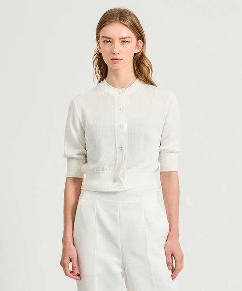 <ASSEMBLE ESTNATION アトレ恵比寿店 先行発売商品> 【ESTNATION(エストネーション)】 サラッとした感触の夏にぴったりな軽やかなカーディガン。 ハリ感のあるペーパーヤーンを使用し、体から離れることで空気層が生まれ、通気性に優れた涼しく快適な着心地です。 コンパクトな5分袖のサイジングは、ボトムとのバランスが取りやすくスタイリングをすっきりと見せてくれます。シンプルなデザインながら、クリアな透明ボタンが涼しげなアクセントに。 機能性とデザイン性を兼ね備えた、夏のデイリースタイルに活躍する一枚です。 同素材アイテム ノースリーブ品番 : 52-109-12-070307 ■こちらは手洗い可能な商品です。 【お買い物をよりお楽しみいただくために】 ▽商品のお気に入り登録(ハートマークをクリック) 完売カラーの再入荷通知や、ラスト1点の通知、値下げの通知を受けることができます。 ▽ブランドのお気に入り登録 ESTNATIONのトップページ右上にある「お気に入りショップに追加」を押していただくと、新商品や再入荷など、いち早くブランドのお得な情報を受け取ることができます。