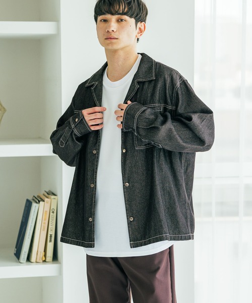 デザインにひねりを効かせたデニムシャツ。 オープンカラーで顔周りはすっきりと、丈は短めでまっすぐになっています。 デニムシャツとGジャンを掛け合わせたような一枚で、羽織ものとして活躍します。 メタルのスナップボタンで着脱も楽です。 【素材】 ハリのあるしっかりとした素材。 【スタイリング】 シンプルなデザインなので着回し抜群。 長い期間で着られて便利です。