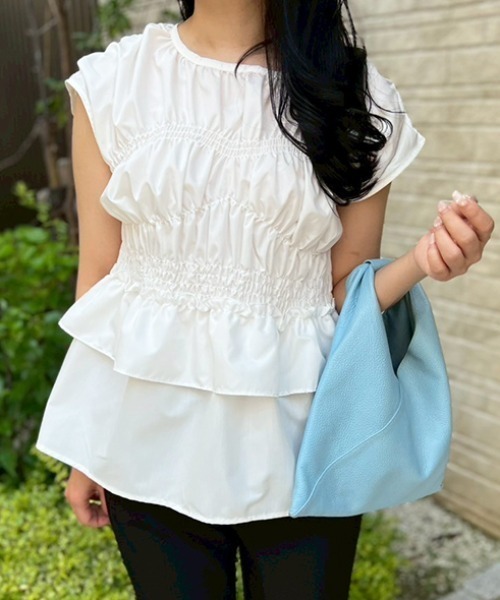 シャーリングを施したデザイントップスが登場。 程良いフレンチスリーブ丈で、1番気になる 二の腕部分をカバーしてくれる設計に◎ シンプルながらもデザイン性高めな 1枚で主役になるアイテムです♡ ・・・・・・・・・・・・ Details 裏地:なし 伸縮性:あり(シャーリング部分) ポケット:なし ・・・・・・・・・・・・ Model 身長:160cm 着用サイズ:FREE ・・・・・・・・・・・・ !Attention! ◆無理な力が加わったり、水気や湿気が原因で破損する恐れがございますので、お取り扱いには十分ご注意下さい。 ◆サイズは平置きでの採寸表示です。 ◆なるべく実物に近いカラーで掲載するよう注意しておりますが、お客様のモニター・使用環境により、若干アイテムの色が異なって見える場合もございますので予めご了承下さいませ。 ◆商品により、若干の誤差が生じてしまう場合がございますので、予めご了承下さいませ。 ────より快適にお買い物を楽しむ為に♥──── ●商品のお気に入り登録 商品カート横の♡をクリック! 完売カラーの再入荷通知・ラスト1点の通知・セールの通知をお知らせ! ●ブランドのお気に入り登録 いち早くMODE ROBEの新商品や再入荷などをお知らせ♪ ────────────────────────
