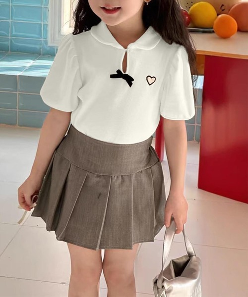 ガーリーなディテールが詰まった、リボンとハート刺繍がポイントのポロシャツが登場!ふんわりとしたパフスリーブと丸襟が、上品で愛らしい雰囲気を演出してくれます。ストレッチ性のある柔らかい素材で、着心地も抜群◎パンツやスカートはもちろん、ジャンパースカートのインナーとしてもおすすめ。デイリーにもお出かけコーデにも使える、万能トップスです。【カラー展開】ホワイト / グレー / ブラック【おすすめコーデ】・ドット柄スカートでガーリースタイルに・デニムショートパンツと合わせてカジュアルガーリーに【おすすめシーン】お出かけ、公園、写真撮影、保育園・幼稚園の登園コーデにぴったり!
