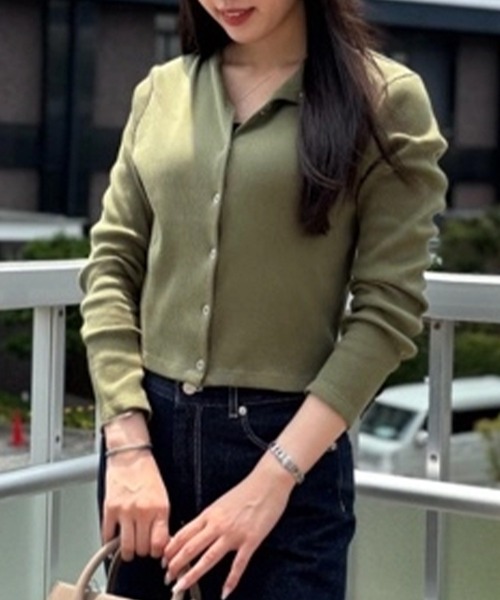 どんなボトムにもマッチするショート&スリムなリブジャージカーディガン ・程よい厚みのコットン100%リブジャージ ・どんなボトムともバランスが取りやすいショート丈 ・ベーシックに使えるスリムフィットのクルーネックデザイン ・シンプルさの中に上品なアクセントを加えるメタルリングドットボタン ・シーズンレスで着用できる程よい厚み感がおススメ Regular Fit 程よい厚みのコットン100%リブジャージ素材で仕立てたショート丈カーディガンは、どんなボトムともバランスが取りやすい汎用性に優れた一枚。スリムなシルエットが大人らしい着こなしを後押しするベーシックアイテムです。 ミニマムなルックスをメタルリングのドットボタンがスタイリッシュな表情に仕上げ、ボディと同色のワニロゴパッチが控えめなアクセントに。一枚ではもちろん軽めの羽織りとしても使いやすく、長いシーズン活躍します。