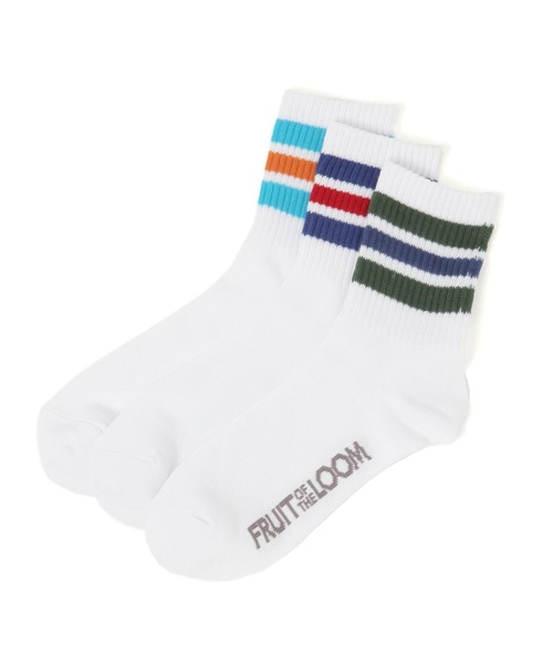 デイリー使いにぴったり! デイリーユースにぴったりなFRUIT OF THE LOOMの3ラインカラーソックス。 シンプルなデザインなので、幅広いスタイリングでアクセントとして楽しんでいただけるアイテムです。 柔らかく、ドライな素材感なので履き心地も抜群で、伸縮性もよく足に気持ちよくフィットする快適なソックスです。 また足の形状を考慮しているので、フィット感と耐久性にも優れ、底部分のクッションはパイルを使用しており、快適に歩行をアシストしてくれます◎ ■原産国:中国 ■サイズ:23~25cm 【FRUIT OF THE LOOM/フルーツオブザルーム】 160年以上の歴史を持つ世界有数のベーシックアパレル/アンダーウェアメーカーです。 現在アメリカ・ケンタッキー州に本拠地を置き、 古くからアメリカ人のライフスタイルに溶け込み、この果実のロゴを知らないアメリカ人はいないと言われており、アメリカを感じる商品を幅広く展開し続けています。 ーーー 靴下 ソックス セット フルーツオブザルーム FRUIT OF THE LOOM ーーー