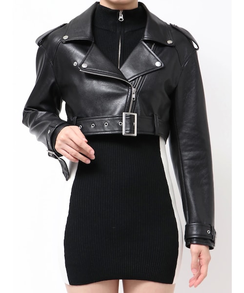 GYDA(ジェイダ)の「Fake leather shortジャケット(ライダースジャケット・レディース・ブラック/ブラウン・F)」の1枚目の写真