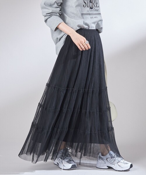 ―25AW― 軽やかな揺れ感が魅力のチュールスカート ■デザイン フェミニンな印象のチュールに、プリーツを施し大人カジュアルに仕上げたスカート。 チュールを2枚重ねることで程良いボリューム感を出しながら、空気をはらんだような軽さと動きが出ます。 ウエストはゴム仕様で着心地がよく、グログランにすることできちんと感を演出しています。 ■素材 プリーツ加工を施したポリエステルチュールを使用。 ■コーディネート プリントTやニット、シャツはもちろん、ジャケットなどマスキュリンなアイテムとミックススタイルがおすすめです。 ■お問い合わせ品番:313-25-0664 ------------------------------------- 生地の厚み:中間 伸縮性:有 透け感:チュール部分有 光沢感:無 ポケット:無 水洗い:可 ------------------------------------- ※しわ、プリーツ加工は永久的なものではありません。 ※着用、洗濯の繰り返しで、しわ、プリーツは徐々に消失していきます。 ※デザイン上、意図的に端を裁ち切り状態にしています。 ※着用の際は、バッグやアクセサリー、表面の粗い物等への引っ掛かりに十分にご注意ください。 ※過度な力や摩擦が加わると、縫い目の滑脱、生地の擦り切れや破れ、生地の変形が生じますので十分にご注意ください。 ※撮影環境により商品の色味が異なって見える場合がございます。商品のお色味は、物撮り画像をご参考にしてください。 ※末永く愛用頂く為に、アテンションタグを必ずご確認の上、着用又はお取り扱いください。 ※画像の商品はサンプルです。 実際の商品と仕様、加工、サイズが若干異なる場合がございます。