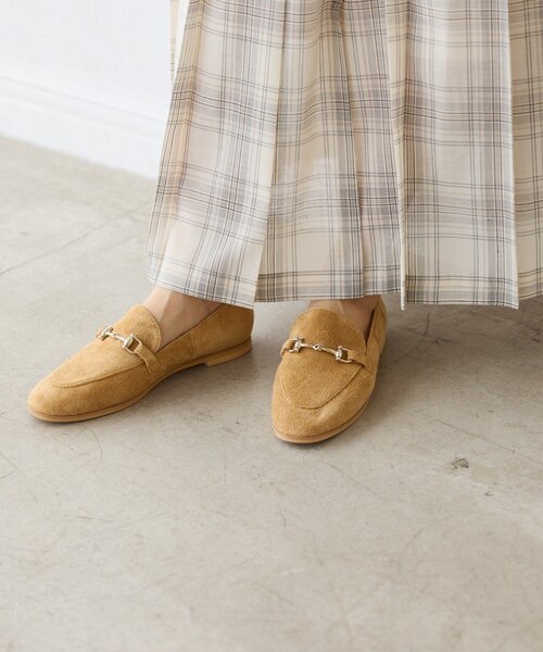 スエードの素材感できちんと感とカジュアル感をプラス●デザインゴールドのビット金具がポイントのローファー。履くだけでトレンドルックを叶えてくれるアイテムです。無駄のないシンプルで飽きがこないデザイン。スエード素材なのでソフトな履き心地で足に馴染む一足。上品でカジュアルな印象を両立できるのも魅力となっております。●サイズ36:22.5cm37:23.5cm 38:24.5cm●素材本体:牛革 底:合成底--------------------------------------------------------------------------------【お買い物をもっと便利に楽しく♪】『♡』をクリックでお気に入り登録✓「商品のお気に入り登録」で・・・ラスト1点や再入荷の通知が届きます。登録して頂いた商品だけが対象となる、あなただけのタイムセールが開催されることも!✓「ブランドのお気に入り登録」で・・・新商品や再入荷など、いち早くブランドのお得な情報を受け取ることができますので、ご登録をおすすめします!--------------------------------------------------------------------------------【注意点】※画像の商品は光の照射や角度、お使いのモニター環境により、 実物と色味が異なる場合がございます。※入荷状況により、お届け予定が前後する場合があります。※お客様への発送が店頭販売より遅れる場合もあります。※追加生産商品は、一部の店舗、通販で販売中の場合がございます。 予めご了承下さい。----------------------------------------------------------------------