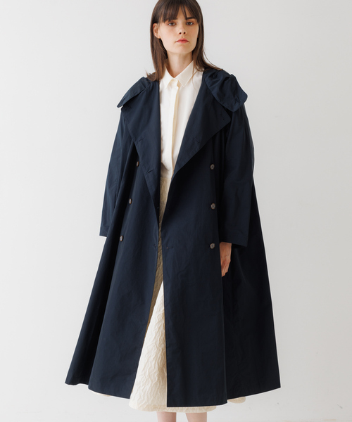 フードの付いたナイロンコート。トレンチ風のデザインですが、フードがあることでかっちりしすぎずカジュアルに着こなせます。 ベージュ撮影画像はサンプルを着用しているため、実物と一部デザインが異なります。正しい仕様は、ネイビー撮影画像をご確認くださいませ。 クリーニング方法:ドライクリーニング 【注意事項】 ※商品画像は、光の当たり具合やパソコンなどの閲覧環境により、 実際の色味と異なって見える場合がございます。あらかじめご了承ください。 ※画像の商品はサンプルです。 実際の商品と仕様、加工が若干異なる場合があります。 ※サイズ表記はあくまで目安となります。 ※その他の予約商品、通常商品との同時決済はできません。 ※入荷状況により、お届け予定が前後する場合があります。 ※お客様への発送が店頭販売より遅れる場合もあります。 ※追加生産商品は、一部の店舗、通販で販売中の場合がございます。予めご了承下さい。 ※商品を使用前に、タグ等に記載されている「取り扱い上の注意書き」 「洗濯表示」を必ずご確認ください。 ※商品に不良が無い場合、包装紙および箱の彼損がございましても発送いたします。 あらかじめご了承ください。