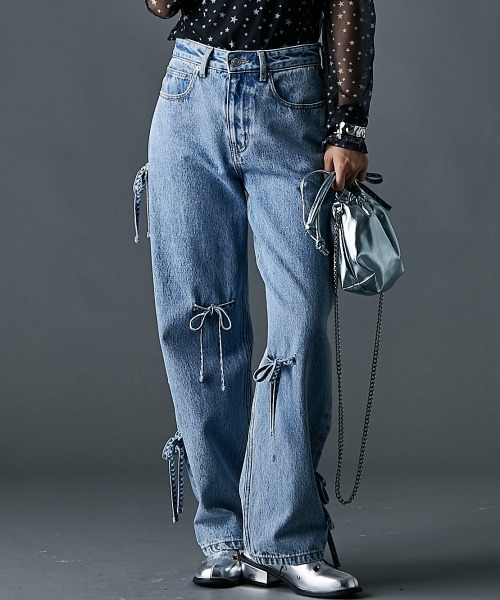 遊び心あふれるリボンディテールが目を引くデニムパンツ。 ■デザイン 随所に付けられたリボンディテールがスタイリングにユニークなアクセントを加えます。 ややゆったりとしたサイズストレートパンツはリボンの結び方で多少のシルエット変化が楽しめます。 普通のデニムに飽きた方や、一味違うファッションを楽しみたい方にオススメです。 カジュアルなブルーデニムとシッなブラックデニムの2色展開です。 ■素材 綿100%11.5OZのデニム生地を使用。 ■おすすめのスタイリング 目を引くデザインのパンツですが合わせるトップスを選ばないのが嬉しいポイント。 定番デニムと同じ着回し力を発揮します。 合わせるだけでトレンド感のあるスタイルにしてくれます。 <仕様> 前ファスナー リボンは取り外しできません。 この商品はウエストゴムによる伸び縮みができません。 製品洗いの為、色の出方・仕上がりサイズが多少異なる場合があります。 透け感:なし 伸縮性:なし 生地の厚み:厚い 光沢感:なし ポケット:あり(ポケット前2つ・後ろ2つ・コインポケット1つ) 季節:通年向き シルエット:普通 <洗濯方法> 洗濯機OK ●SMILE LANDコンセプト● 「好きな服だけ着ていたい!」 自由なサイズ選びで楽しめるファッションを提案します。 @la_smileland【公式インスタグラムアカウント】 公式インスタグラムにてプラスサイズモデルさんの着用コーデや動画など随時更新しております。 是非チェックしてみてください♪ ●サイズ● SMILELANDは大きいサイズ専門店として、サイズ設計にとことんこだわります! 着心地良くおしゃれを楽しめるよう、独自のサイズ設計になっております。 そのため、他ショップ様のサイズより少し大きめに感じられることがあります。 <対応サイズ>を参考にしていただき、お買い物をお楽しみください。 <対応サイズ> M :ウエスト:64~69/ヒップ:91~95 L :ウエスト:69~77/ヒップ:92~100 LL :ウエスト:77~85/ヒップ:97~105 3L :ウエスト:85~93/ヒップ:102~110 4L :ウエスト:93~101/ヒップ:107~115 5L :ウエスト:101~109/ヒップ:112~120 ※こちらはヌードサイズです。 ※平置きのアイテムサイズとは異なる計測方法となりますのでご了承ください。 #SMILELAND#スマイルランド #トレンド#ディティール#着映え#1枚あると便利 #トレンドカラー#定番カラー#抜け感 #ゆったり#おでかけ#体型カバー#二の腕カバー#長め裾 #大きいサイズ#プラスサイズ#大きいサイズレディス #ボディポジティブ