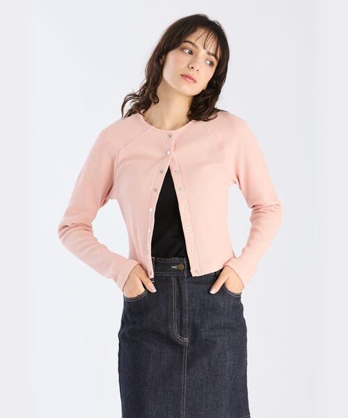 ワッフル編みの表情豊かな生地が魅力のコンパクトカーディガン。パール調ボタンが上品なアクセントになり、きれいめにもカジュアルにも対応。短め丈でスタイルアップ効果もあり、ワンピースやハイウエストボトムと好相性。一枚あると重宝する、万能アイテムです。原産国:中国組成:綿95% ポリウレタン5%実寸情報38(M)バスト:80cm/ゆき丈:76cm/身丈:45cm40(L)バスト:82cm/ゆき丈:78cm/身丈:47.5cm (##)