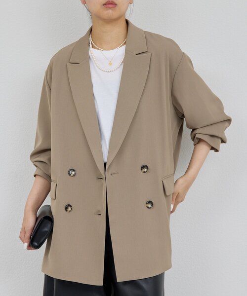 マニッシュなこなれ感を演出するライトジャケット●洒落感と、手軽さを両立したテーラードジャケット。●ラフさのあるオーバーシルエットが大人スタイリングに抜けを作ります。●知的でマニッシュな雰囲気のあるダブル仕様。●体形や合わせたい雰囲気によって選べる2サイズ展開。●程よい厚みの生地で、軽やかに羽織れるアイテム。■洗濯:手洗い可■裏地:なし※画像の商品はサンプルです。実際の商品と仕様、加工などが若干異なる場合があります。また、生産過程上の都合により、洗濯表記や混率、サイズスペック等が多少変更になる可能性がございます。予めご了承ください。※トップの画像は、光の具合で色味が違って見える場合があります。◆気になる商品は「お気に入り」登録を◆ハートマークをクリックし、お好きなカラーを選んでお気に入りに登録すると入荷情報や残り1点の通知、完売カラーの再入荷、セール情報などを受け取ることができます。