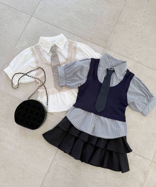 着るだけでトレンド顔♪注目アイテムのネクタイがセットになったシャツドッキングトップスが登場■デザインシャツ×ベストのドッキングデザイントップスにネクタイがセットになったトレンドムード溢れるアイテム。1枚で今っぽなコーデに仕上がります♪ボリューム感のあるパフ袖が気になる部分をカバーしつつ、ガーリーな印象をプラスしてくれます。ネクタイを外してシンプルに着こなすこともできるので、スタイリングの幅が広がる今シーズン大活躍間違いなしの一枚です。■サイズ感程よく身体にフィットするサイズ感。身頃はニットなので伸縮性があり、窮屈感なく着られます。■スタイリングプリーツスカートや台形ミニスカートと合わせてスクールライクに着こなすのがおすすめです。ネクタイを外すと印象が変わるので、様々な着こなしを楽しめます。・・・・・・・・・・・・・・・・・・・・・・透け感:ややあり([ベージュ・ブラウン]シャツ部分)裏地:なし伸縮性:あり(ニット部分)光沢感:なし生地の厚さ:普通・・・・・・・・・・・・・・・・・・・・・・■商品のお気に入り登録 再入荷通知やのこりわずか、お得なプライスダウンの情報も受け取ることができます。ぜひご登録ください◎※サンプルでの撮影の為、製品と仕様が異なる場合がございます。※商品の色味は、撮影場所や光のあたり具合などにより色味が違って見える場合がございます。また、お客様のお使いのモニター環境などにより色味が異なって見える場合がございます。予めご了承の上ご注文下さい。