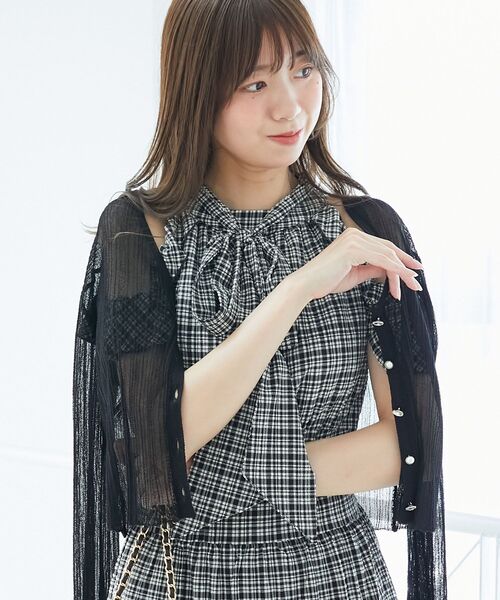 キラキラ煌めくボタンがシーズンムードを盛り上げる、万能シアーカーディガン■デザインこれからの季節にぴったりな、シアー素材のカーディガンが登場。キラキラ輝くビジューとパールボタンがアクセントになり、シンプルながらも存在感抜群。コーディネートを華やかに彩ります。袖は程よくフレアスリーブにすることで華奢な印象を演出。色違いで集めたくなる、マルチに使えること間違いなしの万能アイテムです。■サイズ感コンパクトなシルエットで、すっきりとした印象に。着丈は低身長さんや小柄な方もスタイリングのバランスがとりやすいショート丈です。#低身長#小柄※ネックポイントからの着丈:43cm■スタイリングキャミソールやTシャツ、キャミワンピースに羽織れば日除け&冷房対策に♪程よいシアー感がヌケ感を出しつつ気になる腕周りを隠してくれます。インナーをいれて、前を閉めればトップスとしても着ていただけます。季節の変わり目の温度調節にも◎・・・・・・・・・・・・・・・・・・・・・・透け感:あり裏地:なし伸縮性:あり光沢感:ややあり生地の厚さ:薄手・・・・・・・・・・・・・・・・・・・・・・■商品のお気に入り登録 再入荷通知やのこりわずか、お得なプライスダウンの情報も受け取ることができます。ぜひご登録ください◎※サンプルでの撮影の為、製品と仕様が異なる場合がございます。※商品の色味は、撮影場所や光のあたり具合などにより色味が違って見える場合がございます。また、お客様のお使いのモニター環境などにより色味が異なって見える場合がございます。予めご了承の上ご注文下さい。
