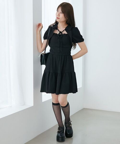 デコルテカットで肌みせを演出♪これからのシーズンにぴったりのカットソー素材のミニワンピース■デザインデコルテ部分をカットしオープンデザインにすることで、肌見せをさりげなく演出!1枚で周りと差がつくワンピースが完成しました◎上身頃はコンパクトに、スカートはウエストから裾にかけて広がるティアードフレアシルエットにすることでメリハリが生まれ、スタイルアップを叶えます。伸縮性のあるカットソー素材で動きやすいので、旅行や野外のイベントにもぴったり。これからの時期に大活躍する一着です。■サイズ感身頃はシャーリングになっており、身体にやさしくフィットします。伸縮性のある生地を使用しているので、窮屈感なく着ていただけます。※ウエストゴム最大幅:130cm■スタイリングハイソックスやミュールを合わせた、今っぽガーリースタイルがおすすめです♪ボリュームのあるスニーカーと合わせてメリハリを出しても◎・・・・・・・・・・・・・・・・・・・・・・透け感:なし裏地:なし伸縮性:あり光沢感:なし生地の厚さ:普通・・・・・・・・・・・・・・・・・・・・・・■商品のお気に入り登録 再入荷通知やのこりわずか、お得なプライスダウンの情報も受け取ることができます。ぜひご登録ください◎※サンプルでの撮影の為、製品と仕様が異なる場合がございます。※商品の色味は、撮影場所や光のあたり具合などにより色味が違って見える場合がございます。また、お客様のお使いのモニター環境などにより色味が異なって見える場合がございます。予めご了承の上ご注文下さい。