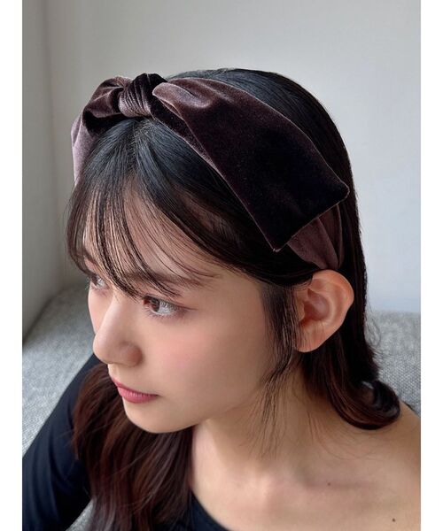 シーズンムードを高めるベロア生地のリボンカチューシャ。センターにONされた大きめのリボンがポイント。こっくりしたベロア素材で甘すぎず大人っぽく身につけられるアイテムです。シンプルなダウンヘアや、まとめ髪にプラスしてクラシカルに仕上げるのがおすすめです。