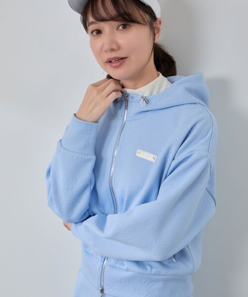 上質感のあるオリジナルのモノグラムロゴジャガード素材を使用したフーディパーカー。 立体的な織り柄がコーディネートにさりげない存在感をあたえ、 きらりと光るファスナー使いが印象的なアクセントに。 スポーティさの中に洗練された表情をのぞかせる、主役級のライトアウターです。 ※ERC55100と同素材です。 ーーーーーーーーーーーーーーーーーーーーー 裏地:なし 光沢感:なし 透け感:なし ポケット:あり 伸縮性:あり ーーーーーーーーーーーーーーーーーーーーーーー 【モデル着用サイズ】 身長:167cm 着用サイズ:M <同シリーズアイテム> ・ロゴキルト風ジャガードファスナー付スカート(品番:ERC55100) ※実際の商品はお客様のお使いの端末や閲覧環境により、写真と実物の色味や質感が 多少異なって見える場合がございます。予めご了承ください。 ※画像の商品はサンプルです。 実際の商品とは仕様・加工・サイズ・素材が若干異なる場合がございます。 JUN&ROPE’(ジュンアンドロペ)は、「Function GOLF」をコンセプトに、“おしゃれをする楽しさ”と“高いパフォーマンスを支える機能性”を両立させたゴルフウエアブランド。 スタイリッシュなレディースゴルフウエアに加え、2024年秋には本格的なメンズ向けコレクション「NOIR(ノワール)」がデビュー。幅広いゴルファーに向けて、さらに多彩なラインナップを展開しています。 また、女子プロゴルファーをはじめとする多くのプロ選手とも契約し、実際のプレーを支える“本物”のモノづくりも魅力。プロにも選ばれ、信頼される機能性とデザイン性を兼ね備えたアイテムは、ゴルフ場でもタウンユースでも活躍します。