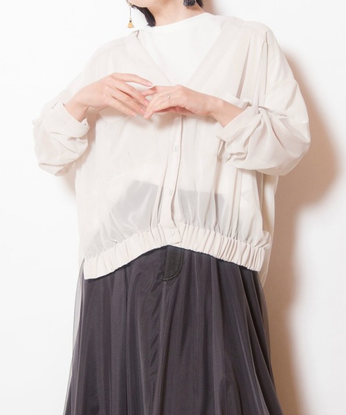 Autumn Winter collection ワークムードなブルゾンを、肌を透かせるセンシュアルなシアーで大人の女性らしさに。 陽射し&冷房除けとしても、スタイリングにプラスしたい1枚。 =========================== 透け感: あり 伸縮性: ほぼなし 光沢感: なし 裏地: なし 素材について: 非常に軽く、肌触りはドライなシフォン素材 =========================== 【仕様】 袖調節可能 【洗濯表示】 洗濯機可 ■商品のお気に入り登録 クーポンやタイムセール、再入荷通知やラスト1点など お得な情報を受け取ることができます。 ご登録をお忘れなく◎