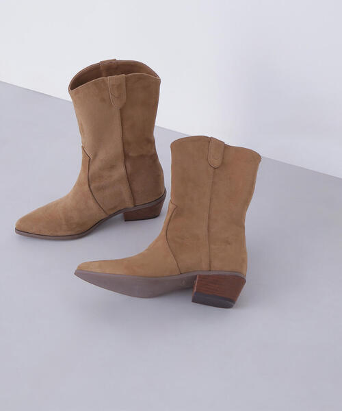 柔らかなフェイクスウェード素材と、さりげないウエスタンディテールが魅力のミドルブーツ。筒部分は柔らかく足あたりが優しい設計で、歩くたびに自然になじみ、リラックスしたはき心地を叶えます。細身のシルエットとほんのりカーブしたカットラインが、女性らしい足元を演出。スカートにもパンツにも合わせやすく、秋冬のスタイリングに欠かせない一足です。【センチ】S:約22.5cm、M:約23.5cm、L:約24.5cm※モデルの着用画像の場合、光の当たり具合により、実際の色味と異なって見えることがございます。色味は、商品単体の画像をご参照ください。【ZOZOでのお買い物をもっと楽しむために!】■ブランド・ショップのお気に入り登録・いち早く新作アイテムや限定クーポンなどのお得な情報を受け取ることができます!■商品のお気に入り登録・完売商品の再入荷通知や、残り1点の通知、各種セール通知も受け取ることができ、よりお得にお買い物頂けるチャンスがあります!
