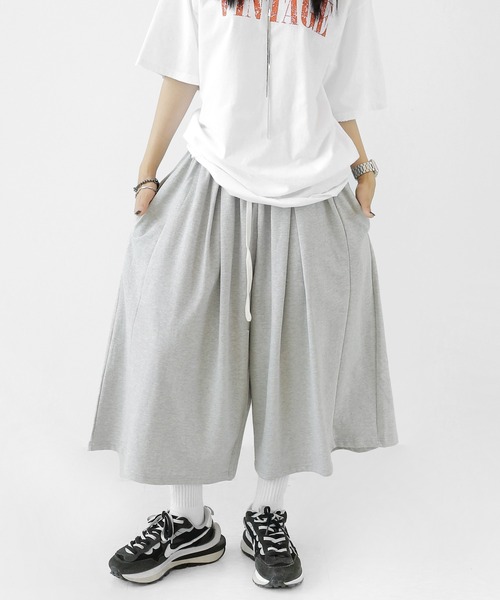 膝を覆うロング丈×立体的シルエットが魅力のワイドバミューダパンツ。 リラックス感がありながらも、きちんと見えする仕立てで、夏の主役ボトムとして大活躍間違いなし。 ✔ 洗練感を演出するフロントタック 前面に入った深めのタックが、立体的なフォルムと抜け感をプラス。 ✔ ワイドフィットでリラックスムード 動きやすさもバツグンなワイドシルエット。体のラインを拾わず、楽に穿けるのも嬉しいポイント。 ✔ 膝を隠すロング丈の絶妙バランス ハーフパンツより少し長めの丈感で、大人っぽく仕上がるバミューダスタイル。 ✔ 快適なゴムウエスト仕様 ストレスフリーな履き心地で、デイリーにぴったり。 ✔ 着回しやすいシンプルデザイン Tシャツ、クロップT、シャツなど、どんなトップスとも相性◎。カジュアルからストリートまで幅広く対応。 さりげない立体感と絶妙な丈感が新鮮な、夏の万能ボトム。 ワイドなのにすっきり見える、こなれた1本です。 ★男性モデル 身長173cm 体重60kg 着用サイズ: ONE SIZE ■ショッピングをお楽しみいただく為に 商品のお気に入り登録 お気に入りの商品やサイズ・カラーまで、お気に入りの登録をしていただきますと、そのアイテムのセールの通知、ラスト1点になった時の通知や、完売しても再入荷通知を受け取ることができます! ブランドのお気に入り登録 新商品の発売や再入荷、タイムセールやクーポン発行のお知らせなど、minsobiがお届けするお得な情報を受け取ることができます! ※通知はアプリでも受け取ることができますので、是非アプリの通知設定をお願い致します! 韓国ファッション。 ユニセックスファッション。 モード系ファッション。 ストリートファッション。 ギークシック。 ジェンダーレス。 y2k。