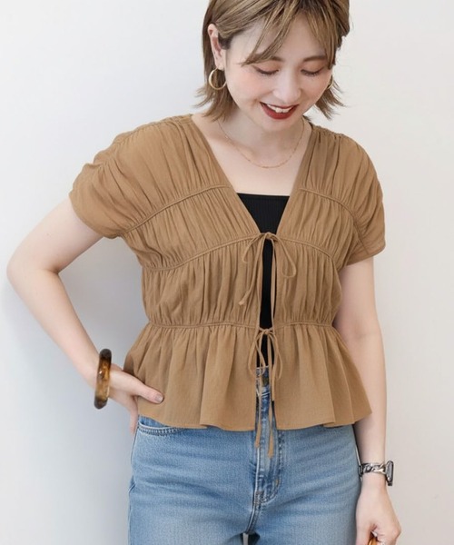 ギャザー&リボンディテールがポイントのフェミニンブラウス。ふんわりとしたシルエットで身体のラインを拾わず、自然な立体感を演出します。 リボンを外して羽織としてはもちろん、前後2WAYで違った雰囲気を楽しめるのも嬉しいポイント。 きれいめボトムからカジュアルデニムとの相性も抜群な着回し力の高いトレンドアイテムです。 透け感[ややあり] 生地の厚さ[薄手] 光沢感[なし] 伸縮性[なし] 裏地[なし] ポケット[なし] ※モデル着用画像は、光の当たり具合で色味が違って見える場合がございます。 商品の色味は、物撮りの画像をご参照ください。 ●AMERICAN HOLIC ● (アメリカンホリック) 大人の女性の毎日を軽やかで豊かにするブランド。 カジュアルなのにオシャレ、コーディネートも楽。ONにもOFFにも等身大で楽しむオトナの日常着をテーマに、スタイリッシュかつ自然体を楽しめるカジュアルスタイルを提案します。 ▼ 商品のお気に入り登録がおすすめです ▼ 商品ページ内のハートマークをクリック。完売時の再入荷や、最後の1点の通知、お得なお値下げの際の通知を受ける事ができます。 【お知らせ】ページでも通知が確認できます。