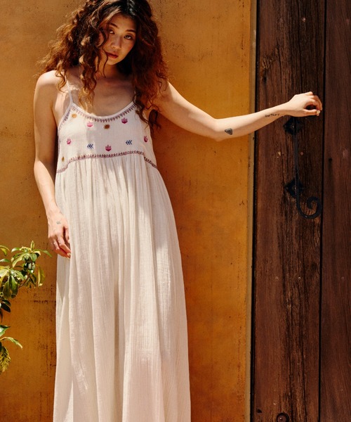 刺繍キャミワンピース ・細かな抽象的なモチーフを刺繍であしらい、表情豊かなデザインに仕上げた一枚 ・肌に柔らかい甘めの織りのコットン生地を使用し、快適な着心地を実現 ・サンダルや天然素材の小物と合わせた真夏のスタイリングにもぴったり ・ミニTをインナーに入れてレイヤードする着こなしもおすすめ ・ナチュラルな雰囲気と女性らしさを引き立てるアイテム ・オフホワイト、ブラックの2色展開です 商品特性 透け感 : あり 伸縮性 : あり 生地の厚さ : 普通 裏地 : あり 洗濯 : 非常に弱い水流で30℃までの水温で洗濯機洗いが可能 スタッフレビュー 細やかな刺繍が魅力的なキャミワンピースです。 一枚でさらっと着ても可愛く、レイヤードしても着映えするデザインです。 サンダルやかごバッグ、天然素材のアクセサリーなどと合わせて、夏のリラックス感あるコーディネートが楽しめます。 HLAADA for ROSE BUD サンスクリット語で『爽快』『喜び』を意味する""HLAADA/フラーダ"" 長年インドやバリ等で服作りをおこなってきた女性デザイナーによるHLAADAとROSE BUDとのコラボレーションラインが『HLAADA for ROSE BUD』になります。プロダクトはほぼインドでおこなわれており、オリジナルのプリントデザインやインドの職人による手工芸のテクニックを織り交ぜながら、VINTAGE WEARの様なカジュアルさをオンしたラインナップに。 その『HLAADA for ROSE BUD』が、2025年夏、数年ぶりに再登場! 過去人気だったアーカイブアイテムをはじめ、真夏の気候に嬉しいインド綿を使ったワンピースや、新しくヘンプコットン生地を使用したTEEシャツも登場。 独特な世界観はタウンユースは勿論、海などのリゾートや旅にもお勧めです。古着感覚のスタイリングもお勧めな夏のコレクションになっています。今シーズンからネームタグがゴールドに新しくかわりました。 お気に入り登録 ・商品のお気に入り登録 再入荷・残り1点・セールの通知を受け取ることができます。 ・ブランドのお気に入り登録 新商品・再入荷/・ショップおすすめトピックスなど、ブランドの情報を受け取ることができます。 取扱注意事項 モデルの着用画像の場合、光の当たり具合により、実際の色味と異なって見えることがございます。 色味は、商品生地の画像をご参照ください。 この製品はインド製の素材を使用しています。 織りむら・染色むら・ネップ(織り玉)がありますが生地特有の風合いで、キズではありませんのでご了承下さい。 雨や汗などで湿った場合や強い摩擦により、他の衣類等に色移りすることがありますのでご注意下さい。 特に白物(淡色)との着用はお避け下さい。濡れた時は他の衣類と重ねないで下さい。 デリケートな素材ですのでお取り扱いは丁寧にお願いします。アクセサリーや時計などへの引っかけにご注意下さい。 又、強い日光(照明)を長時間受けますと、変色の恐れがありますので、着用及び保管の際にはご注意下さい。