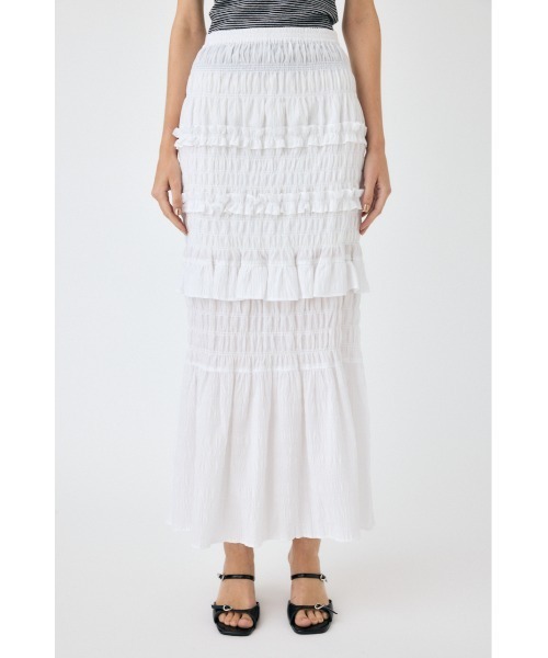 【SHIRRING LONG SKIRT / シャーリングロングスカート】■ポイントシャーリングとフリルのディテールが特徴的なギャザースカート。■ディテールゴムシャーリングでしっかりと伸縮性があり、快適な穿き心地を叶えます。ヒップのラインを拾いすぎないよう切替位置に配慮する等、こだわりの詰まったデザインです。■スタイリングポロシャツなどスポーティーなアイテムを合わせると旬なスタイリングになります。■生地透け感:なし裏地:なし(ペチスカート付き)伸縮性:なし光沢感:なし■商品のお気に入り登録お気に入りアイテムの再入荷・在庫1点などの通知を受け取ることができます。■ブランドのお気に入り登録新作アイテムの入荷や人気アイテムの再入荷、おすすめトピックスなど、いち早くブランドの情報を受け取ることができます。[注意事項]※画像の商品はサンプルです。実際の商品と仕様、加工が若干異なる場合があります。※画像の商品は光の照射や角度、お使いのモニター環境により、実物と色味が異なる場合がございます。※着用、お取り扱いの際は、アテンションタグをご確認ください。・こちらの商品はMOUSSY独自の採寸方法となっています。本サイトのサイズガイドと採寸方法が異なる場合がありますのでご了承ください。