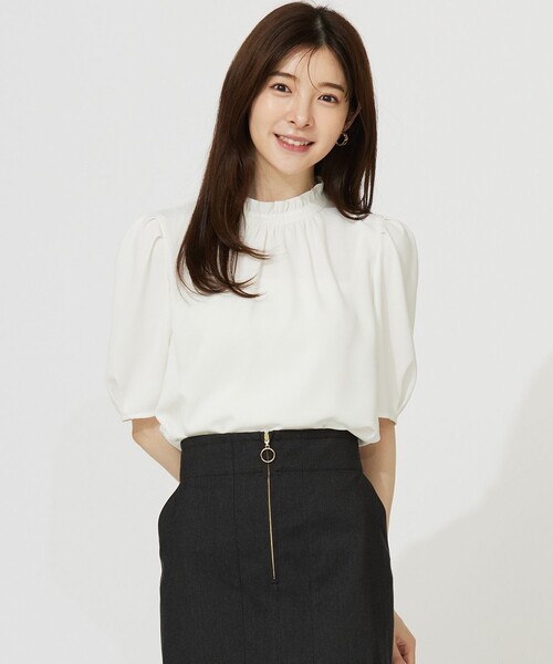 人気の上品ブラウスが半袖でリバイバル!オフィスやセレモニーなど幅広いシーンで活躍するスタンドカラーブラウス■デザイン・首元を上品に見せるフリルネックのスタンドカラーブラウス・程よいフリルで可愛くなり過ぎない大人な仕上がり・袖にはタックデザインで着映えるポイント・裾がラウンドしているのでインでもアウトでも決まります・オフとネイビーはオケージョンシーンにも活躍■素材・光沢感を抑えた上品な表面感・綺麗なトロミがあるany SiS定番のポリエステルジョーゼット・軽やかな着心地でサラッと清涼感もあります・透け感は淡色でわずかに感じる程度・通勤にもおすすめな綺麗め素材■機能性・ウォッシャブル■おすすめコーディネートオフィスコーデにはもちろん、デニムやカジュアルスカートとあわせてデイリーな着こなしもおすすめです。こちらの商品はサイズバリエーションがございます。Rレギュラーサイズ(BLWPGM0780) S小さいサイズ(BLWQGM0780) L大きいサイズ(BLWKGM0780)※商品画像はサンプルを使用しているため、色味やサイズ等の仕様に変更がある場合がございますので、予めご了承ください。※屋外での撮影画像は、光の加減で色味が違って見える場合がございます。商品の色味はスタジオ撮影の画像をご参照ください。#anySiS #エニシス #エニィシス #エニスィス #レディース #ブラウス #フリル #スタンドカラー #通勤 #オフィスカジュアル #オフィスコーデ #オフィススタイル #お仕事 #オケージョン #フェミニン #レディスタイル #きれいめ #カジュアルスタイル #カジュアル #大人カジュアル #休日コーデ #七五三 #お受験 #小学校受験 #幼稚園受験 #フォーマル #洗える #ウォッシャブル #学校行事 #マザーニーズ #学校訪問服 #ママ #セレモニー洗濯表示【本体のみ】40℃まで弱洗濯可 塩素系漂白不可 タンブル乾燥不可 日陰つり干し乾燥 アイロンは160℃まで ドライクリーニング(石油系)可 弱いウェットクリーニング可