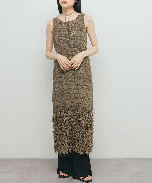 【洗練された着こなしが叶うニットワンピース】 合わせるインナー次第でオールシーズン着ていただけるニットワンピース。メランジカラーと、裾の太めのフリンジが特徴的で洗練された着こなしが叶います。Iラインシルエットは大人っぽさも演出します。落ち感のあるパンツを合わせた抜け感のあるスタイリングがおすすめです。 【2025 Spring/Summer】【25SS】 ※この商品は、ピリングができやすい素材を使用しています。小バサミなどを使い元糸を傷つけないように取り除いてください。 ※商品自体の重さで伸びてしまうことがあります。シルエットをくずさないために、保管の際はハンガーを使用せず、たたみ保管にしてください。 総重量 : 約590g ※商品画像は、光の当たり具合やパソコンなどの閲覧環境により、実際の色味と異なって見える場合がございます。予めご了承ください。 ※商品の色味の目安は、商品単体の画像をご参照ください。 ▼お気に入り登録のおすすめ▼ お気に入り登録商品は、マイページにて現在の価格情報や在庫状況の確認が可能です。 お買い物リストの管理に是非ご利用下さい。 素材感 透け感 : なし 伸縮性 : あり 裏地 : なし 光沢 : なし ポケット : なし one