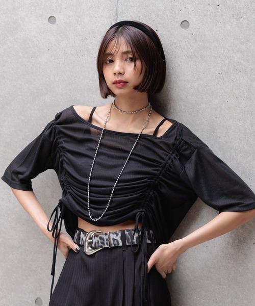 \くしゅっとしたドロストが可愛らしさを演出するセットアップ/ ルーズネックでオフショルとワンショル着用可能に。 ドロスト付きで裾丈の調整可能に、ウエスト回りは見せるように。 コンパクトなシルエットなのでボリュームのあるボトムとの相性〇 カジュアルなアイテムとも合わせやすいのでおすすめ。 〈注意事項〉 ・サンプルにて撮影をしておりますので、実際の商品とは素材や仕様・加工・サイズ等が若干異なる場合がございます。 ・モニター・環境等により実際の商品と色味が多少異なって表示される場合がございます。予めご了承をお願いいたします。 ・撮影環境により、光の当たり具合で色味が違って見える場合があります。あらかじめご了承下さい。 ▼気になるアイテムは《お気に入り登録》がおすすめです! 完売カラーの再入荷情報、セール情報、ラスト1点の通知を受け取ることができます! ▼《ブランドのお気に入り登録》で新商品や再入荷などのお得な情報をいち早くお知らせします。 ※ご注文いただいた予約商品のお届け時期の確認は、注文履歴ページより行えます。