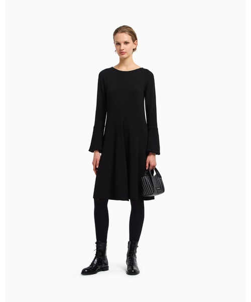 ビスコースのクレープジャージーで仕立てた、ラウンドネックのフレアワンピース。パディング入りの袖口が特徴です。流れるようなラインを描く、フェミニンなカットのアイテムなので、朝のオフィスアワーからアフターファイブのバータイムまで、あらゆるシーンで活躍します。クレープジャージー / フレアスタイル / ラウンドネック / 長袖 / パディングの入ったワイドな袖口 / 背面のコンシールファスナーで留めるデザイン / 一枚仕立て▶お気に入り登録 ハートマークをクリックして、入荷情報・再入荷・セール情報を受け取れます。【EMPORIO ARMANI ブランド紹介】1981年にイタリア、ミラノで誕生。デザイナーはジョルジオ・アルマーニ。イタリア語でエンポリオとは「あらゆるものが手に入る大きな市場」という意味。着心地と自由な発想を大切にしながら、都会的で洗練されたアイテムを提案しています。※こちらはジョルジオ アルマーニ ジャパン株式会社の公式オンラインストアです。アフターサービスにつきましては、当サイト内サポートセンターへご連絡下さい。
