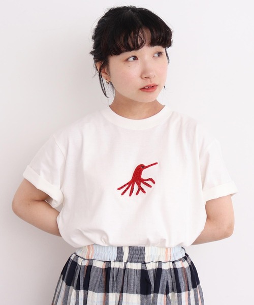 海の仲間たちからタコさんがさがら刺繍のTシャツになりました。夏のおでかけのおともにどうぞ。秋冬のイメージがあるさがら刺繍をTシャツにオンしたひとくせある1着。ワンポイントなので柄物のアイテムやシンプルなコーディネートにも○※着用商品はサンプルです。実際の商品と仕様、加工、サイズが若干異なる場合がございます。※光の関係で実物の商品の色味とは若干異なる場合がございます。実際に近い色味は詳細画像をご参照下さい。※取り扱いの注意については取り扱い表示をよくご確認の上、着用をお願いいたします。【素材の特性、お取り扱いの注意】・この製品は刺繍をほどこしておりますので、刺繍部分を乱暴に扱いますと破損しやすく、強い摩擦や洗濯には十分注意してください。また、配色使いになっておりますので、長時間水につけておいたり、濡れたまま放置しておりますと、淡色部分に移染することがありますのでご注意ください。・刺繍部分アイロン禁止・この製品を洗濯する際には多少縮む場合がありますので、洗濯の際は必ず裏返しにして押し洗いをする様にして下さい。・この製品は、特に濃色の場合、汗や雨等でぬれた際や強くこすられた場合に色落ちし、他の衣料・小物に移染する事がありますので、ご注意下さい。l'atelier du savon(アトリエドゥサボン) CONCEPT 1つ1つにかけられた手のぬくもり日々の生活に、少しのデザインを加えた大人の日常着あそび心とあたたかみ
