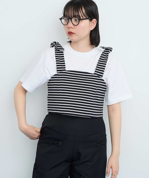 夏らしい印象のボーダービスチェ。 いつものTシャツコーデにプラスしたいアイテムです。 ウサギの耳のような肩ひもがポイント。 肩脇がファスナー開きになっています。 程よい厚みのボーダー生地を使用し 裏に布帛をあてしっかりした印象を持たせました。 ※着用商品はサンプルです。実際の商品と仕様、加工、サイズが若干異なる場合がございます。 ※光の関係で実物の商品の色味とは若干異なる場合がございます。 実際に近い色味は詳細画像をご参照下さい。 ※取り扱いの注意については取り扱い表示をよくご確認の上、着用をお願いいたします。 【素材の特性、お取り扱いの注意】 ・この製品は素材の特性上洗濯により、多少の伸縮、斜行の現象が発生することがありますので、洗濯後、形を整えてから日陰で平干ししてください。タンブラー乾燥はお避け下さい。塩素系漂白剤はご使用にならないで下さい。 ・素材の色により、ぬれたまま長時間放置しますと他の物に色が移染する場合がありますのでご注意下さい。 ・着用の際はベルトやバック周囲の壁など、表面の粗いものとの摩擦による引っかかりにもご注意下さい。 I AMI IN FACT... アイアムアイインファクト わたしはわたし 1年のうちすこしだけおとこのになれたらいいのに でもふと思い出すフリルやピンクにあこがれた 小さいころのじぶん いくつになっても消えることのない 少年少女の心を大切に チャーミングボーイ ドリーミーガール