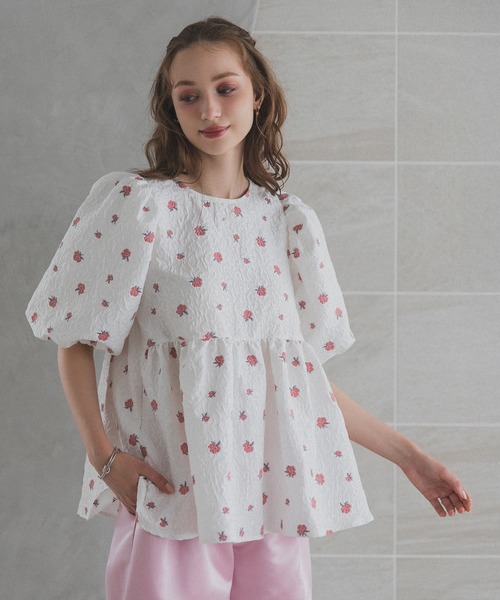 ペプラムフラワーパフスリーブブラウス 立体感のある花柄刺繍が華やかなペプラムブラウス。 ふんわり広がるパフスリーブとペプラムシルエットが女性らしさを引き立て、 1枚でコーデが完成する主役級アイテムです。 ■point ・上品なフラワー刺繍生地を贅沢に使用 ・ウエストからふんわり広がるペプラムラインでスタイルアップ ・ボリュームのあるパフスリーブで甘さと上品さを両立 ・軽やかな生地感で春夏にぴったり ・カラー展開はアイボリー、ホワイト、ブルー、イエローの4色 ■styling ・スリムパンツと合わせて上品な大人フェミニンに ・デニムと合わせてカジュアルダウンも◎ ・マーメイドスカートとの相性も抜群 ・アクセサリーを添えるだけでお呼ばれコーデにも 【サイズ展開】FREEサイズ 着丈:約63cm 肩幅:約31cm バスト:約48.5cm 袖丈:約34cm 袖口:約11.5cm 裾幅:約95cm 【伸縮性】なし 【裏地】なし 【透け感】なし ■素材感 軽やかで立体感のある刺繍素材。 柔らかくふんわりとした風合いで、上品かつ優しい印象を演出します。 1枚で華やかなコーディネートが叶う万能トップスです。 【ご注意】 ・大変デリケートな素材を使用しているため、お取扱いには十分お気を付け下さい。 ・なるべく実物に近い色合いを再現しておりますが、お使いのモニターにより実際の商品カラーとは異なる場合がございます。 ・同商品・同色におきましても、染色やロットによって色合いや風合いが多少異なる場合がございます。 ・画像は参考画像です。写真と実際の商品の色・型が多少異なる場合がございますので、予めご了承ください。 ・生産の過程上、寸法に多少の誤差(±2cm)が生じる場合がありますが、品質・着用上に問題はございません。