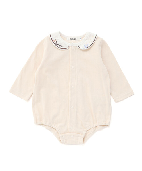 -25AW-ラインの襟がおしゃれな男の子用長袖のボディミニ。■デザイン襟にはクマさんと恐竜さんの刺しゅうをオン!恐竜さんのしっぽからキラキラのお星さまが飛んでいるようなデザインがかわいいポイントです。サロペットのインナーアイテムとしても、オススメなアイテム。襟付きデザインでキチンと感も忘れずに◎スナップボタンで全開になるので、首が座る前の赤ちゃんに着せやすく、新米ママにもおすすめ!股下にもスナップが付いていて、足をバタバタしてもはだけにくく、オムツ替えもラクラクな設計。ベビーらしいムチムチ感がとってもかわいいアイテムです。レッグウォーマーと合わせると防寒もバッチリ◎通園やお散歩などのデイリー使いからちょっとおめかししたい時まで、いっぱい活躍する1着になっています。スナップボタンで全開になるので、首が座る前の赤ちゃんに着せやすく、新米ママにもおすすめ!股下にもスナップが付いていて、足をバタバタしてもはだけにくく、オムツ替えもラクラクな設計になっています。合わせやすいベージュがかったオフホワイト、印象的なボーダーのブラック系の2色展開です。■素材/機能身生地には天竺素材を使用しているから、伸縮性もよく着心地も◎※柄の出方は生地の裁断により一点一点異なります。25秋冬アイテム【2025年 7月のテーマ / Soft Windsong】秋の優しい風がまるで子守歌のように赤ちゃんをふんわりと優しく包み込む世界。柔らかくて優しい素材感のアイテムで赤ちゃんの時間が穏やかに流れますように。【SLAP SLIP(スラップ スリップ)】~子どもの欲しいをカタチに~ヨーロッパのこどものように子どもらしい今しか着れないナチュラルなかわいさを提案どこか上品で清楚感漂うフレンチカジュアルはいつものコーディネートをさりげなく格上げ