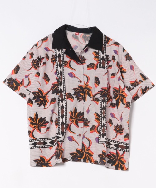 アフリカの伝統布「カンガ」からインスパイアを受け、ロータス柄をアフリカンな雰囲気にリデザインした開襟シャツ。ヴィンテージ感あふれるシックな色合い。ボウリングシャツとアロハシャツをミックスさせたオリジナルデザインです。短め丈で、スカートやパンツなどのボトムとバランスよく着られます。描かれた言葉『RAHA YA DUNIA NI KUPENDANA』は、スワヒリ語で“この世の幸せは愛し合うこと”という意味です。※こちらの商品は1点1点職人による手作りとなります。その為、形や色合いなど若干異なる場合がございます。あらかじめご了承ください。※屋外での撮影画像は、光の当たり具合で色味・カラーが違って見える場合がございます。商品のカラーは、スタジオ撮影の画像をご参照ください。Amina Collection Co.,LTD.