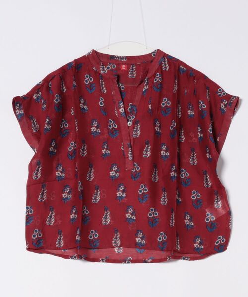 インドのラジャスターン州ジャイプールの伝統技法から生まれたバグルー柄を模したスクリーンプリントトップス。光沢感のあるキュプラレーヨン生地で、とろみのある心地良い肌ざわり。 ゆったりとしたワイドシルエットでリラクシーな着心地です。 涼やかな夏のエスニックスタイルに◎ ※こちらの商品は1点1点職人による手作りとなります。その為、生地の取り方により柄の出方や形・色合いなど若干異なる場合がございます。あらかじめご了承ください。 Amina Collection Co.,LTD.