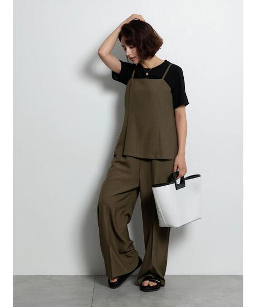 1枚でコーデがサマ見えする、セットアップ風のレイヤードコンビネゾン。背中にスリットを入れることで柔らかな揺れ感をプラス。キャミソールタイプで爽やかなスタイリングに決まり、インナーや羽織を合わせることでロングシーズン活躍してくれるアイテムです。 ※商品画像は、撮影環境やお客様のご利用のPC・スマートフォンのモニター環境などにより実物と色味に差異がある場合がございます。 【その他採寸】 F 着丈:[前]123cm[後]116cm 全長:[肩ストラップ]41cm