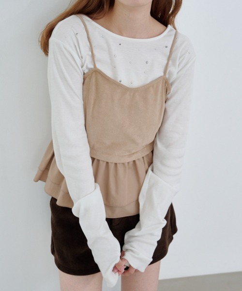 フェミニンなシルエットが魅力のスウェードペプラムビスチェ ■デザイン スウェード調の上品な素材感と、ウエストから広がるペプラムデザインで、一枚で華やかさをプラスできるアイテムです。 上部はすっきりとしたシルエットで、ウエストから切り替えられたペプラムが、体のラインを立体的に見せつつ自然にカバー。 裾にかけてふんわりと広がるシルエットがスタイルアップ効果を発揮します。 シンプルながら存在感のあるデザインで、シーズンレスに活躍します。 ■生地感 見た目に温かみがありつつも軽やかな質感。 柔らかく肌触りも良いため、着心地にも配慮された仕上がりです。 ペプラム部分はさらりとした素材で、動くたびに軽やかな表情を演出します。 ■コーディネート インナーにタートルネックやシアートップスを合わせれば秋冬のレイヤードスタイルにぴったり。 Tシャツやブラウスとの重ね着で春夏も活躍。 ボトムはワイドパンツやスカート、デニムなど、合わせるアイテム次第でカジュアルにもキレイめにも着こなせます。 ジャケットやカーディガンのインナーにもおすすめです。 ■素材・洗濯表示 素材:【本体】ポリエステル93%,ポリウレタン7%【別布】ポリエステル87%,綿13% 洗濯:手洗いまたは洗濯ネットに入れ洗濯機の手洗いコースで洗濯可能 タンブル乾燥:不可 アイロン:不可 ●洗濯ネットを使用してください。 ●生成り・淡色の製品には、白っぽくなりますので蛍光増白剤入りの洗剤は使用しないでください。 ●濃色製品は白、淡色の製品と一緒に洗わないでください。 ●浸け置き洗いは避け、洗濯後はすぐに脱水して、形を整えて陰干ししてください。 ●汗や水、摩擦により他のものに色移りすることがありますのでご注意ください。 ●着用時の摩擦や洗濯により表面に毛玉が発生しますので、発生した毛玉ははさみ等でカットしてください。 ●着用や洗濯により、他の衣類に毛羽が付着することがあります。その際は、ブラシ等で除去してください。 ※サイズ採寸は各モールによって異なり、多少の誤差が生じる可能性がありますのでご了承ください。 ※商品画像はサンプル品を使用しているため、実際の商品と仕様、加工、サイズが若干異なる場合がございます。 また、可能な限り実物に近いカラーにて掲載していますが、使用しているパソコンのモニター設定や、携帯電話のメーカー・機種により実際のカラーと異なって見える場合がございます。予めご了承ください。 ▼商品のお気に入り登録 ハートマークをクリックし、お好きなカラーを選んでお気に入りに登録 完売カラーの再入荷通知や、ラスト1点の通知、セールの通知も受け取ることができます。 ▼ブランドのお気に入り登録 新商品や再入荷等、いち早くブランドのお得な情報を受け取ることができます。 <返品・キャンセルについて> ・着用・洗濯後の返品・ご交換は致しかねます。 ・商品到着後、着用前に商品を確認して頂きますようお願い致します。