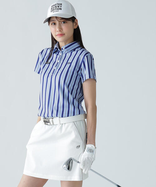 ピッチや色味に変化をつけたストライプ柄がコーディネートのアクセントになる、エアロクールピケマルチストライププリント半袖ポロシャツ。夏のゴルフに適した、特殊な機能性糸を使用して製造されたエアロクールを採用。汗を素早く生地の表面に拡散させ蒸発を促す特殊な糸構造により作られたことにより、涼しくドライな着心地を保ちやすいのが特徴です。インパクトがあり着映えする見た目のファッション性と快適性を両立し、ゴルフに、アウトドアに、デイリーユースに活用できます。MASTER BUNNY EDITION(マスターバニーエディション)コンセプト【勝って、魅せる。】袖をとおす。気持ちがたかぶる。いいイメージが生まれてくる。その高揚感は、プレイヤーにとって ひとつの武器になる。世界で戦うために生まれたブランド、MASTER BUNNY EDITION(マスターバニーエディション)勝ちたい気持ちをつくる服。
