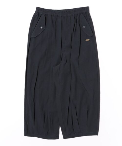 マットな質感のコクーンシルエットパンツ。 コットンナイロン素材にワッシャー加工を施すことで、エアリーなタッチに仕上げ、裾のタックでコクーンシルエットを表現しました。 ポケットのフラップ新作の金属ロゴプレートがアクセントになっています。 ウエストはゴム&紐で快適な履き心地です。 お手入れ:手洗い 店舗へお問い合わせの際は、下記の品番をお申し付け下さい。 [品番:34160453]