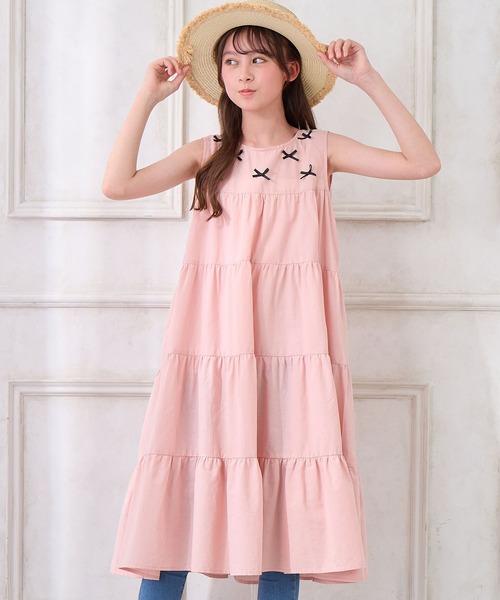 ・たっぷりのギャザーとフレアーのノースリティアードワンピ ・素材感がとっても軽いので、生地たっぷりでも重くならないよ! ・夏のリゾートワンピとしても、お出掛けワンピにも、おうちでまったり涼し気コーデにも、万能に使えます。 ・胸元のリボンがトレンド感もあってかわいいポイント★ ーーーーーーーーーーーーー ①生地の伸縮性・・なし ②生地の厚み・・薄手 ③透け感・・ややあり ④裏地・・なし ⑤ポケット・・なし ーーーーーーーーーーーーー ※ご覧のモニター環境や撮影環境により実際の商品と多少色味が異なって見える場合がございます。 【Amourire girl(アムリールガール)】 普段から着られるカジュアルなアイテムから、特別なお出かけの日に着たいおしゃれアイテムまで、 ちょっと背伸びをしたいティーンガールズに向けたアイテムを展開するブランドです。 着回し抜群なトップスやチェックのセットアップ、おしゃれなワンピースなど、 シーンに合わせて着回せるアイテムが多数登場します。 【お気に入り登録がオススメ!】 ●商品のお気に入り登録 「在庫残りわずか」の通知や、「完売カラーの再入荷」、「セール」の通知を受けることができます。 ●ブランドのお気に入り登録 新商品や再入荷等、ブランドのお得な情報を受け取る事が出来ます。