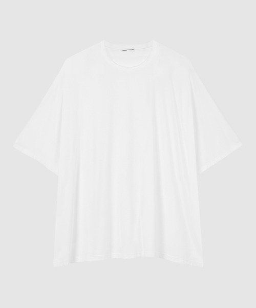 オリジナルの天竺素材を使用したフレンチビッグTシャツ。 自然な光沢や目の立ったきれいな表情、タフでいてしなやかな風合いなど、 あらゆる特長を併せ持った贅沢な素材に仕上げています。 季節を問わずとても着心地の良い素材です。 着用することでドレープやシルエットを生み出す、直線的なビッグフォルムが特徴です。 ※着丈は前身頃のサイズを記載しています