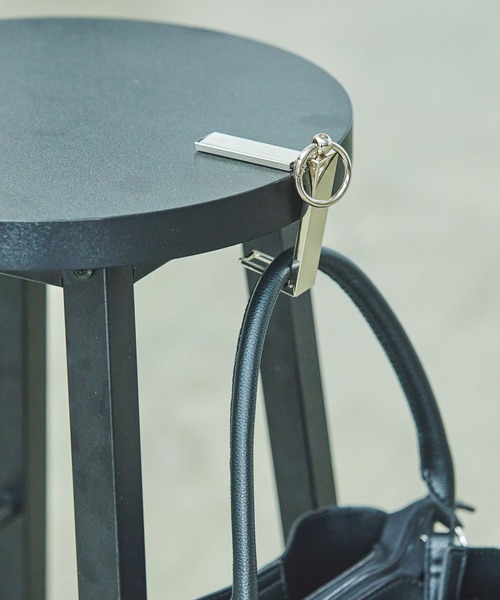 スマホスタンド・バッグハンガーとして2wayでお使いいただけるバッグハンガー。 テーブルなど平らな場所に引っ掛けるとバッグハンガーとしてお使いいただけ、スマホを立てかけてスタンドとしてもお使いいただける便利なアイテム。 使わないときはバッグの持ち手などに引っ掛けられるリングカラビナ付きです。 ■耐荷重:5kg ※使い始めはすべり止め部分の保護シートを剥がしてから使用してください。